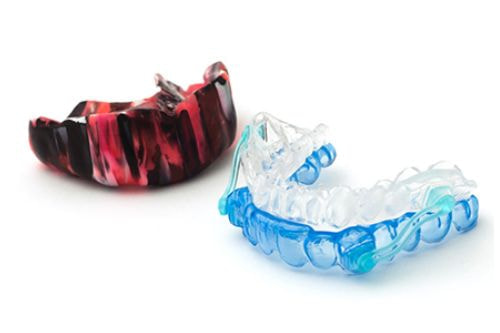 当院では、睡眠時に装着して歯ぎしり予防の治療に用いるマウスピースなど、各種マウスピースの製作を承っています。